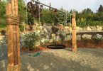 Закончив подготовительную часть, можно строить качели из бруса. Для этого необходимо вырыть четыре ямы, в которые впоследствии будут установлены опорные стойки, обеспечивающие устойчивость системы. Их должно быть как минимум четыре — по две с каждой стороны. При этом расстояние между ними определяется высотой опоры и того, какого размера в целом будут качели из бревен. То же самое касается и количества опорных элементов. Так, большие и массивные конструкции, подразумевающие создание нескольких мест для катания, требует дополнительного усиления, которое проводится путем монтажа вспомогательных опорных элементов. Как правило, их устанавливают между сиденьями, чтобы обеспечить оптимальные условия для его движения.