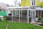 С поликарбонатом хорошо комбинировать камень и кирпич, не менее интересно смотрятся строения в комбинации с деревом и металлом. С данным материалом работать очень легко, он прочен и прослужит много лет.