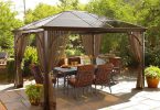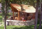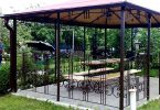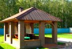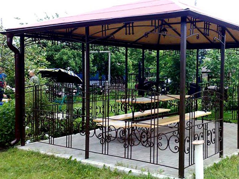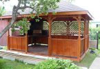 Помните, что дачные беседки могут использоваться в качестве летней кухни. Установив мангал, вы получите возможность жарить мясо на огне. Жарким летом, если сделаны стены, беседку можно использовать и как гостевой домик.