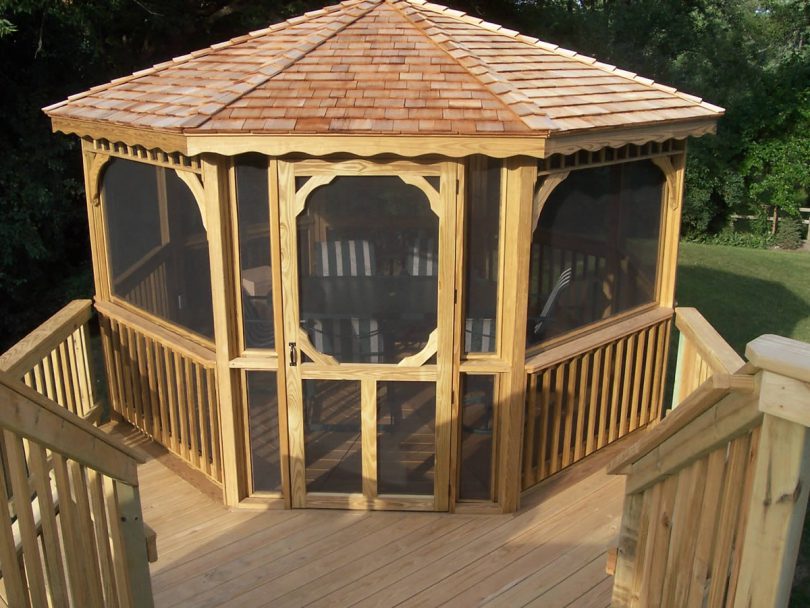 Повреждение древесины насекомыми встречается также часто. Внешний вид беседки может быть безнадежно испорчен, поэтому позаботьтесь о пропитке сооружения специальным составом. Красивые беседки для дачи оригинально украсят ваш участок.
