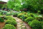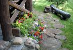Деревенский стиль в дизайне – полная противоположность классическому. Этому стилю присуща легкая, милая небрежность и отсутствие правильных геометрических форм. Цветы рассажены произвольно, клумбы пестрят сочетанием самых разных цветов, становясь похожими на яркий калейдоскоп. Дорожки, как правило, вымощены несплошной плиткой неодинаковой формы, газоны подстрижены нарочито небрежно.