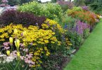 - Миксбордер – самый популярный вид цветника, в котором гармонично сочетаются цветы, кустарники и, может быть, даже небольшие деревья. Этот вид цветника позволяет выбрать различные виды растений и любые формы клумбы, которая может «обтекать» дорожки и строения. Эффектно смотрится сочетание контрастных цветов и размеров (высокие растения располагаются либо в центре, либо по краям цветника).