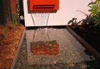 - Лучше всего устанавливать конструкцию подальше от дома, так как порывы ветра могут относить струю воды в сторону, от чего стены будут постоянно влажными.