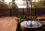 - Наличие деревьев поблизости не самым лучшим образом отразится на работе вашего фонтана – корни могут повредить часть конструкции под землёй, а опадающая листва – засорять воду. В тоже время слишком открытое пространство под прямыми солнечными лучами может стать причиной «цветения» воды.