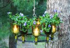 Такие же манипуляции вы можете провести с пластиковыми бутылками. Важно сказать, что для оптимального использования этого атрибута, следует разрезать их пополам, оставив часть с донышком. В землю они вставляются обрезанной частью вниз. Также вы можете удалить и донышко, чтобы в образовавшийся резервуар поместить землю и посадить туда небольшое растение. Как видите – многие дачные идеи своими руками очень просты в применении.