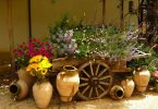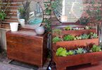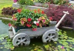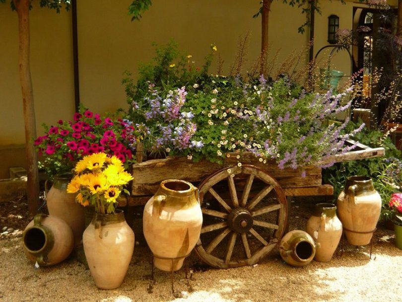 Туалетный столик, тумбочка, небольшой шкаф или буфет могут послужить отличной базой под цветник. Пестрые цветы в выдвинутых ящиках смотрятся ярко и весело. Стоит заметить, что выдвинуть все ящики и посадить в них цветы у вас не получится. Лучше оставить несколько отделений закрытыми, а на поверхность мебели поставить корзинки, вазы и ящики с цветами. Вот такие бывают идеи для дачи!