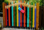 - Забор в стиле «Коробка с карандашами». Оформите каждую дощечку деревянного ограждения как карандаш.