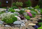 Название говорит само за себя, этот элемент декора представляет собой оригинальное сочетание камней и изящных растений. Благодаря ему преображается ландшафтный дизайн дачного участка, своими руками очень легко соорудить эту интересную горку. Ее обустройство, как правило, начинают в осенний период времени. Для этого на предназначенное место выкладывают битые кирпичи или гравий, затем засыпают все землей.