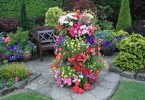 Клумбы представляют собой вертикальные сооружения, наполненные почвой. Цветы на таких конструкциях превосходно растут, они поглощают максимальное количество солнечного света, а нестандартное решение придает участку оригинальности и изысканности. Дизайнеры предлагают выращивать на таких клумбах не только декоративные растения, но и вьющиеся плодоносящие, и зелень. Клумбы бывают самых различных форм: пирамидальные, конусные, трапециевидные.