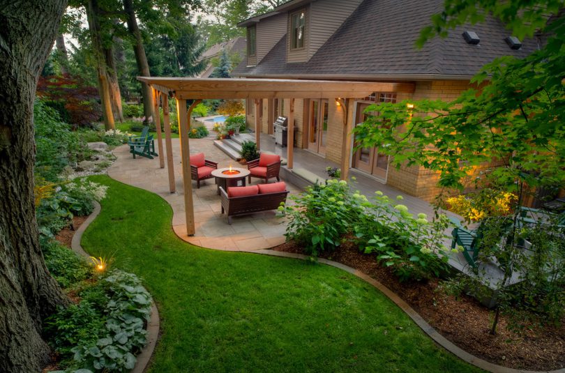 Участок в 10-12 соток предоставляет широкий выбор потенциальных объектов. Это газон или беседка, украшенная вьющимися растениями, игровой уголок для детей или баня, бассейн или пруд с декоративными растениями.