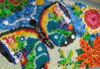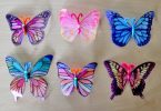 Чтобы сделать красивую бабочку, надо найти соответствующее изображение бабочки и распечатать его. Бутылку разрезать. Понадобится только средняя ровная часть. Далее нужно приложить пластик к распечатке и перевести рисунок. Раскрасить его лучше всего акрилом. Потом бабочку вырезают и подгибают крылья.