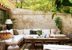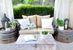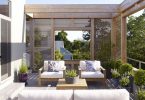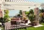 Если патио расположено рядом с домом, ограждения лучше делать из того же материала, что и основные стены. Например, дача из сруба или досок требует декора из дерева; дом, сложенный из кирпича, можно дополнить кирпичной или каменной оградой того же оттенка. Дополнительной защитой от ветра и любопытных взглядов станут растения. Патио можно окружить кустами жасмина, сирени, шиповника, боярышника. Они не только изящно выглядят, но и наполняют маленький дворик чудесным ароматом в период цветения.