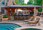 Патио на даче будет общим местом отдыха, оно должно понравиться всем. Очень красиво, когда зона отдыха окружена газоном или цветником. Возможно, вам захочется выкопать рядом маленький водоем, установить водопад или даже фонтан, оборудовать съемный тент, организовать сложную систему подсветки. Все эти детали учитываются перед строительством, вносить изменения в уже замощенную зону будет гораздо сложнее.