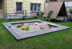 - Песочница для детей должна находиться в просматриваемой местности. Дети должны быть под контролем родителей. Поэтому будет лучше построить ее ближе к дому, чтобы присматривать за малышом из окна кухни.