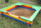 Осталось купить наполнитель для песочницы. Песок можно приобрести в магазине или воспользоваться песком с обычной речки. Песок с речки обязательно нужно будет просеять. А если покупной, то желательно чтобы он был с добавками, которые будут отпугивать различных грызунов. Песок должен быть чистым, так как он непосредственно входит в контакт с ребенком.