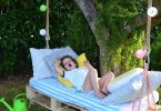 Это наиболее удобный и практичный вариант для обустройства зоны отдыха в саду. Как правило, это компактные по размерам качели, рассчитанные на одного отдыхающего. Конструкции, выполненные из дерева, пластика или оцинкованной трубы подвешивают за прочные ветки дерева или специально смонтированные перекладины.
