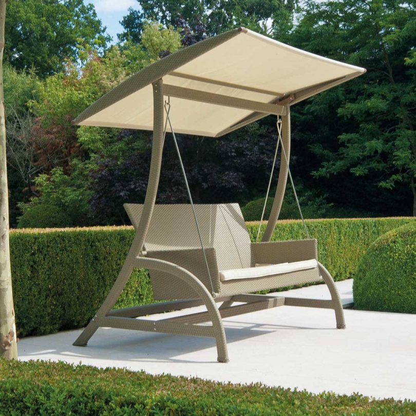 Это особый тип конструкции, который объединил в себе качели диван и шатер из ткани. Когда шторы опускаются, создается полное ощущение закрытого интимного пространства.