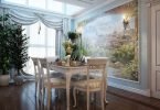 С крупным рисунком на других обоях фотообои плохо сочетаются. В квартирах-студиях фотообои хорошо выделяют отдельные зоны. Необычный способ разнообразить стиль – задействовать изображения на окнах, дверях, зеркалах, шкафах-купе, используя прозрачные пленки или окантовку по периметру.