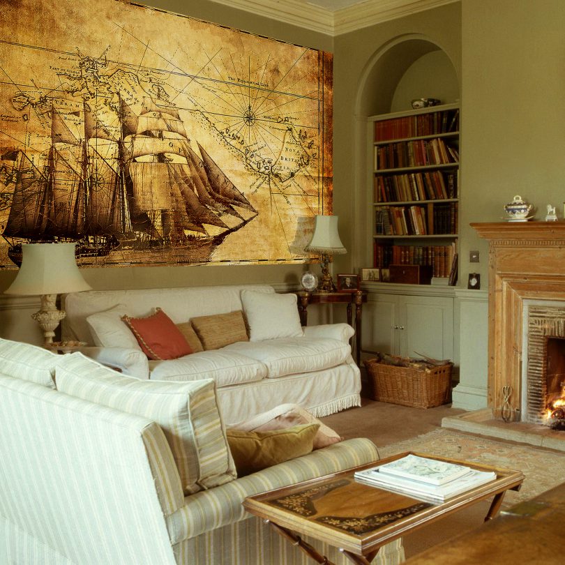 Стиль ориентирован на конкретную эпоху, на обоях возможны любые упоминания об этом времени: люди, техника, домашняя утварь, атрибутика.