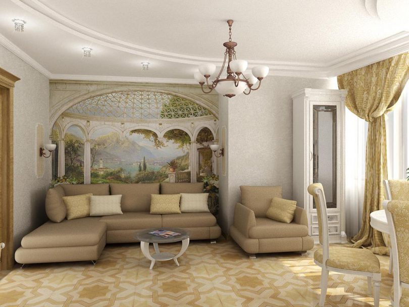 - для больших комнат подходит много вариантов широкоформатных изображений;