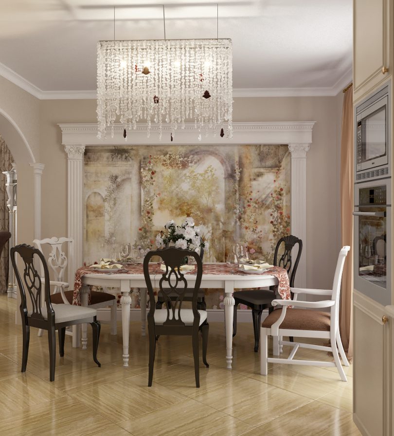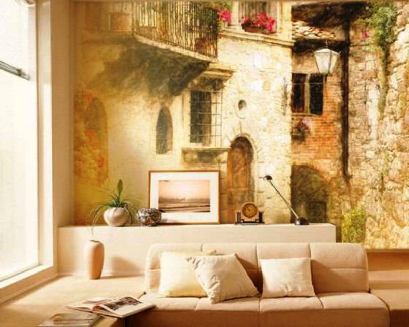 Знаменитые художественные изображения, старинная архитектура, замки, башни. Имитация различных отделочных материалов. Для этого стиля характерны разные виды текстуры обоев.