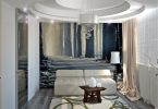 - могут визуально расширить, углубить объем, увеличить высоту помещения, скрыть неровности поверхностей;