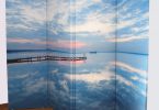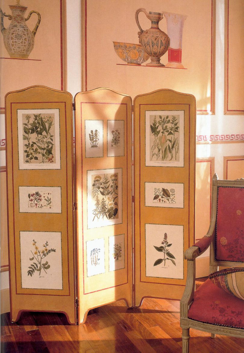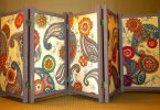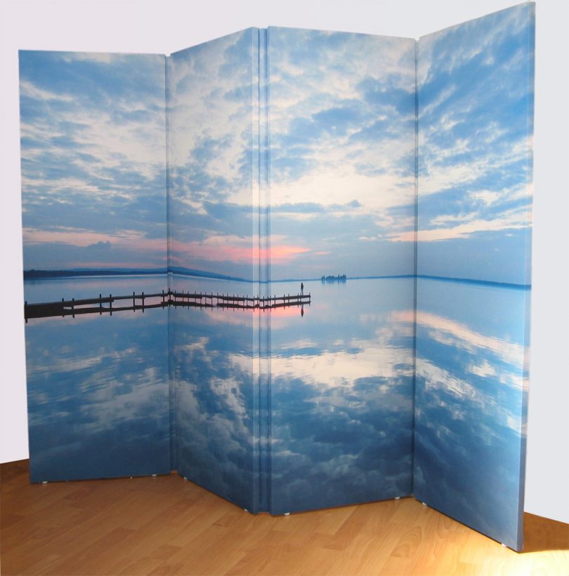Поможет изменить ширма и надоевшую обстановку комнаты. Для этого, к примеру, можно расположить в помещении нарисованный пейзаж. Или же создать расслабляющую морскую атмосферу, украсив створки изделия оттенками желтого цвета, морскими ракушками и голубыми тонами.