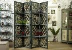 Перегородки такого типа состоят из жесткого каркаса и створок (чаще всего их три или четыре), которые соединяются между своеобразной «гармошкой». Элементы крепления в данном случае – это петли (рояльные или мебельные), либо мягкие материалы, например, текстиль или кожа. Раньше ширмы со створками создавались на основе деревянного каркаса. Потом начал применяться и металл. В современных изделиях используются и пластиковые каркасы.