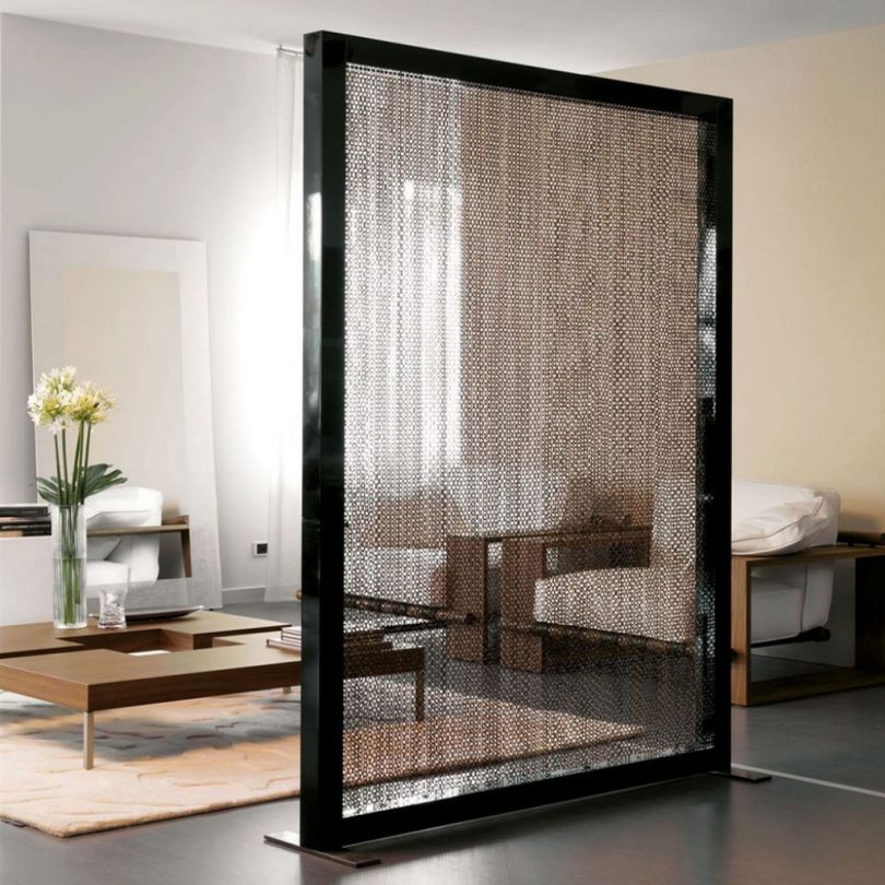 Этот вариант перегородок появился относительно недавно. Это гибкая стенка, которую можно с легкостью развернуть в виде перегородки или же создать из нее настоящий лабиринт. Когда ширма не нужна – она легко скручивается в компактный рулон. Производители предлагают разные варианты конструкций такого типа, однако чаще всего они состоят из жестких планок или трубок и гибкого крепления.