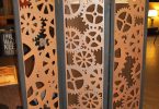 - Перегородка раздвижного типа из МДФ. Чтобы ее изготовить, нужно лишь скрепить готовые плиты, а потом их украсить. Так как МДФ плиты имеют декоративные петли, то докупать элементы крепления не придется.