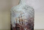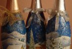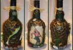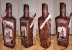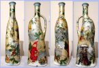 Объем изображению на бутылке можно придать, приклеив к ее поверхности яичные скорлупки. С помощью техники декупажа можно придать предметам интерьера новый вид, совершенно преобразив привычные вещи. Оформленная одним из описанных способов бутылка с напитком станет замечательным украшением праздничного стола.