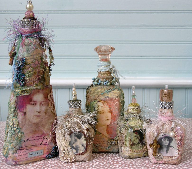 Декупаж бутылок можно выполнить с применением следующих техник.