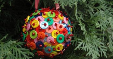 Пуговиц обычно накапливается достаточно много. Из них или с их помощью получаются оригинальные елочные украшения. Пуговицы легко подобрать по цвету или размеру. Если нет подходящих, всегда можно покрасить в любой цвет имеющиеся в наличии. Отверстия в пуговках можно оставить, можно задекорировать портновскими булавками с разноцветными головками. Нам понадобятся следующие материалы: