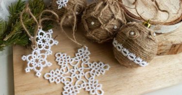 Нежность кружев и суровость джутового шпагата позволяют создать стильное новогоднее украшение. Можно дополнить его стразами и бусинами. Переливаясь в свете гирлянд, они будут создавать праздничное новогоднее настроение. Для создания игрушки нам понадобятся следующие материал: