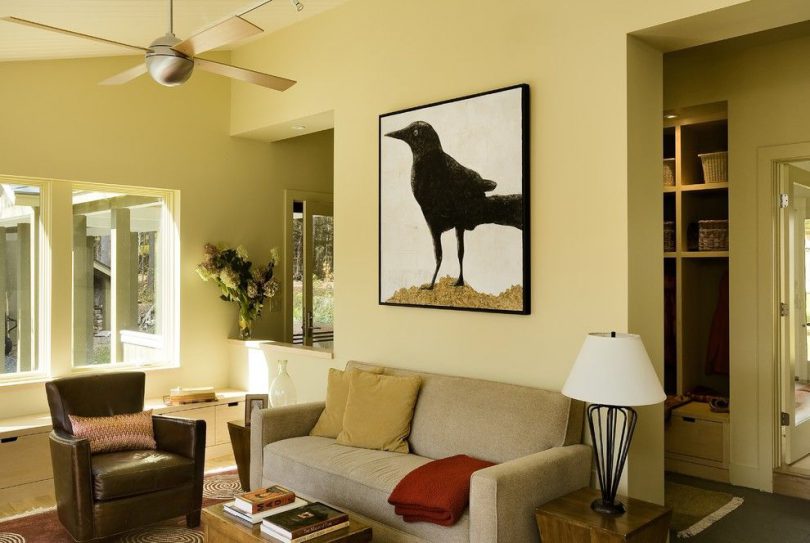 Очень легко исправить огрехи интерьера. Например, над тяжелым и громоздким предметом, таким как диван, стоит развесить несколько картин одинакового размера в одинаковых рамах, и он сразу станет визуально меньше. Так же можно использовать оригинальные картины удлиненного горизонтального формата.