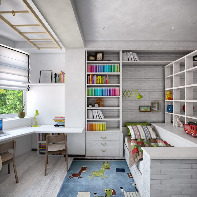 Школьнику нужно больше место, под хранение учебных принадлежностей и книг, которые со временем станут вытеснять из детской игрушки. Но не стоит убирать их сразу, несмотря на изменившийся статус и новые обязанности, ребенок по-прежнему остается ребенком и ему хочется не только заниматься, но и играть.