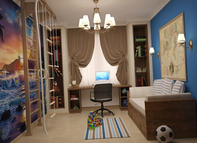 Любое увлечение ребенка должно найти отклик при разработке дизайна помещения. Интересуйтесь мнением ребенка, позвольте ему поучаствовать в выборе аксессуаров. Пусть мальчик увидит, что его мнение тоже важно для родителей, что стараются для него, он будет рад и благодарен, а комната станет любимой.