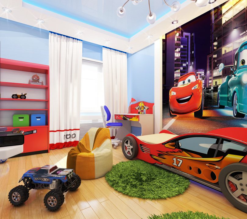 Лучше не перегружать комнату лишними предметами, так как мальчики трех-пяти лет, как правило, очень активны. У ребенка уже есть любимые персонажи, и он будет рад видеть их в своей комнате. Самое время определиться с тематикой и расставить яркие акценты.