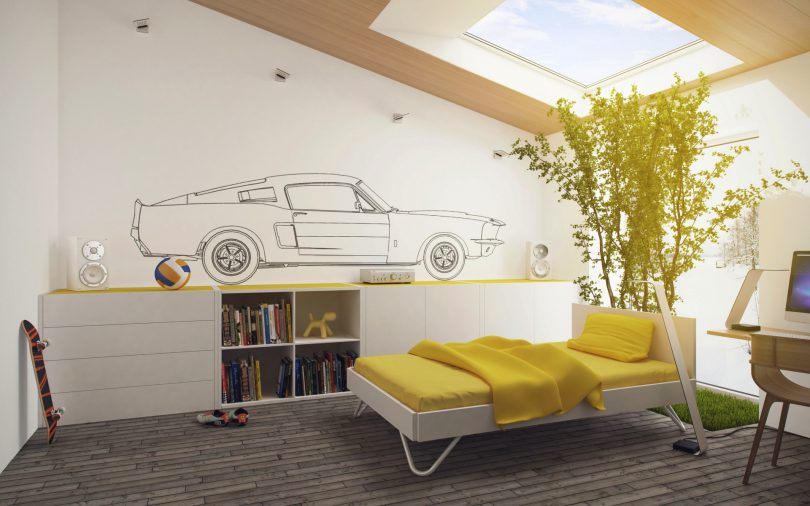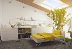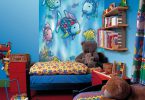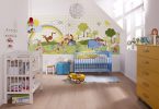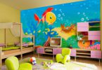 Отличное решение дизайна, способное воплотить детские мечты, но их не должно быть много. Лучше всего покрыть ими одну стену. Остальные стены могут покрыть бумажные обои для детской комнаты, имеющий пастельные тона и приятный цвет.