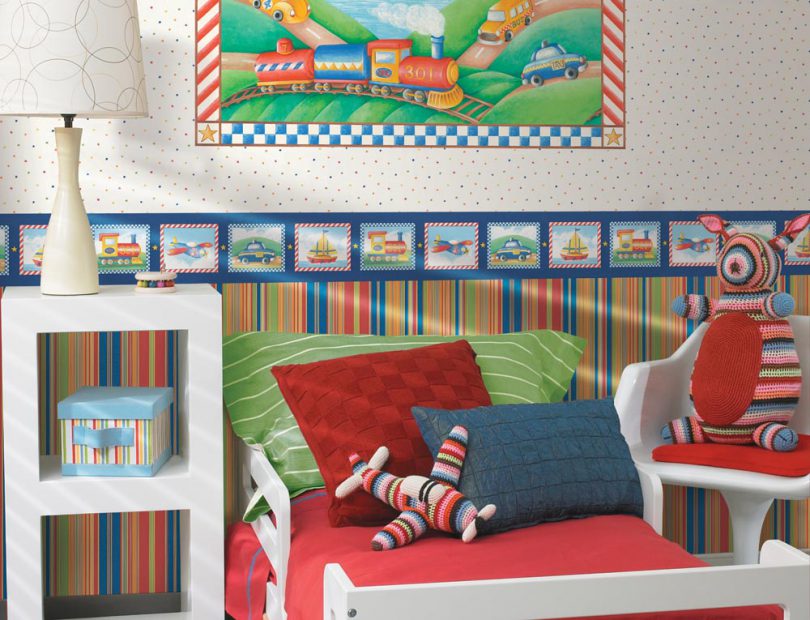 - Тематические обои. На них изображены крупные элементы какого-либо сюжета, а более мелкие детали и цвета предоставлены для оформления ребенку.