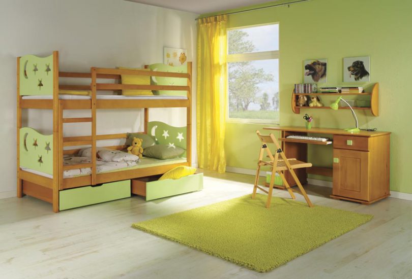 Однако эти материалы достаточно дорогие, поэтому многие родители отдают предпочтение более доступным – дереву и ДСП. Они обладают целым рядом положительных свойств, среди которых отметим: