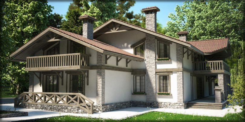 Весьма популярен в настоящее время и стиль шале. Изначально в этом стиле строились жилища альпийских пастухов. Как и прованс, шале относится к дорогостоящим стилям. Причиной этому является использование камня и натуральной древесины. Стиль характеризуется простотой крыши, как и отделки в целом.