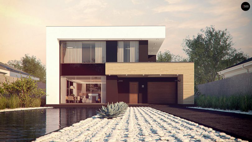 Этот стиль часто реализуют при строительстве небольших домов в пределах городской черты. Сегодня наибольшую популярность имеет тенденция использовать стиль хай-тек. Фасад дома, выполненный с применением таких стилистических решений, оформлен просто, и выглядит лаконично и четко.