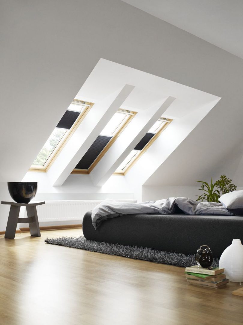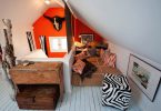 Если мансарда в вашем доме с ломаной крышей, то это можно грамотно обыграть. В месте, где высота потолка меньшая, можно устроить спальное место или поставить диванчик.