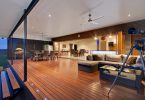В южных районах страны будет актуальна открытая веранда из дерева. Допустимо соорудить обычный дощатый помост, зачастую его укладывают в уровень 1 этажа. Такая пристройка будет открыта солнцу и ветру. А вот в северных регионах лучше всего сделать застекленную террасу. Если ее дополнительно утеплить, то помещение можно использовать даже глубокой осенью.