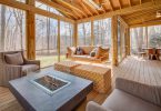 Грамотно выполненный дизайн закрытой веранды позволяет превратить ее в полноценную комнату для проживания и, конечно, отдыха. Установленные раздвижные двери и окна максимально приблизят находящихся в ней людей к природе. В этом помещении можно поставить удобную мебель, соорудить камин.