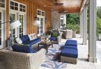 Летняя веранда будет смотреться просто восхитительно, если на опорах развешать кашпо с однолетними садовыми цветами. Для такого типа помещения больше всего подходит легкая плетеная мебель, желательно из ненастоящего ротанга. У нее много плюсов: