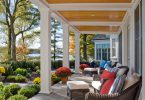Оформление веранды загородного дома можно выполнить различными способами. Первым делом надо иметь в виду, что на веранде должно быть много света. Но избыток солнечных лучей не всегда уместен, поэтому нужно побеспокоиться о: