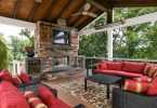 Это место можно сделать площадкой, где будут играть дети. Если установить небольшой обеденный гарнитур, может получиться столовая на свежем воздухе. Если хочется, чтобы там была кухня, то не стоит переносить кухонный гарнитур полностью. Дизайн должен быть простым, достаточно будет наличия: