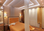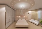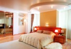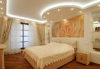 Спальню лучше же оформить в стиле авангард, барокко, конструктивизм, хай-тек. Прямоугольный потолок из гипсокартона двухуровневый прекрасно будет гармонировать в спальне.